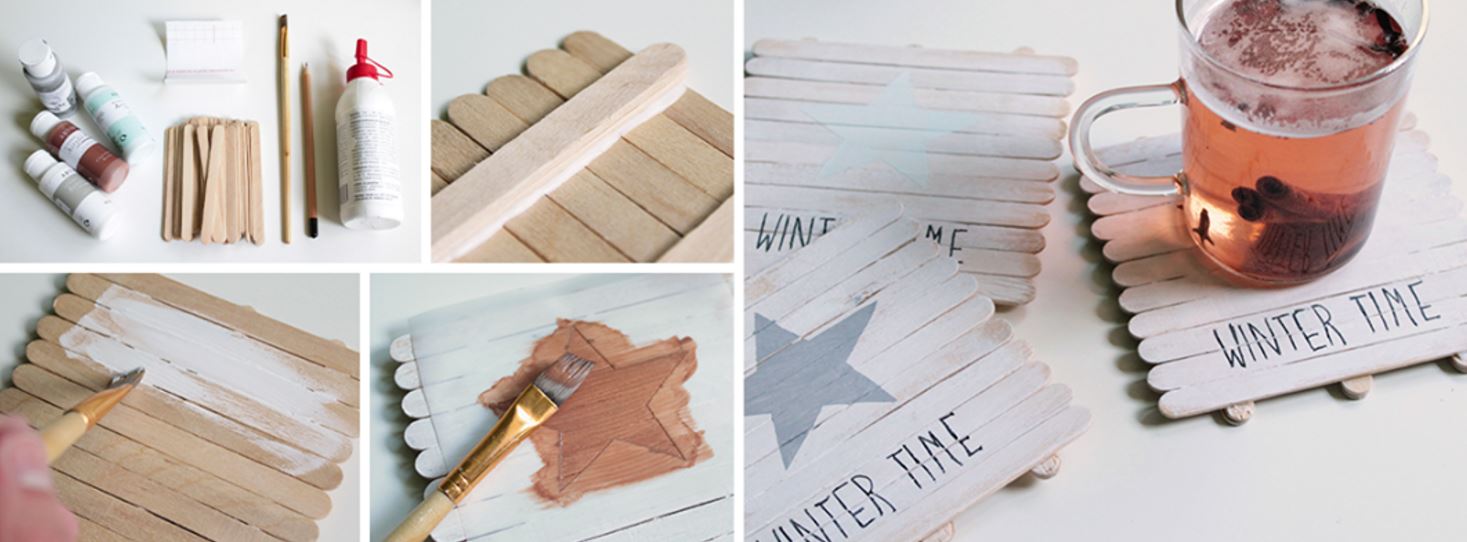 4. Hotové podložky natrieme bielou farbou na drevo alebo akrylovou farbou. Necháme kompletne zaschnúť.